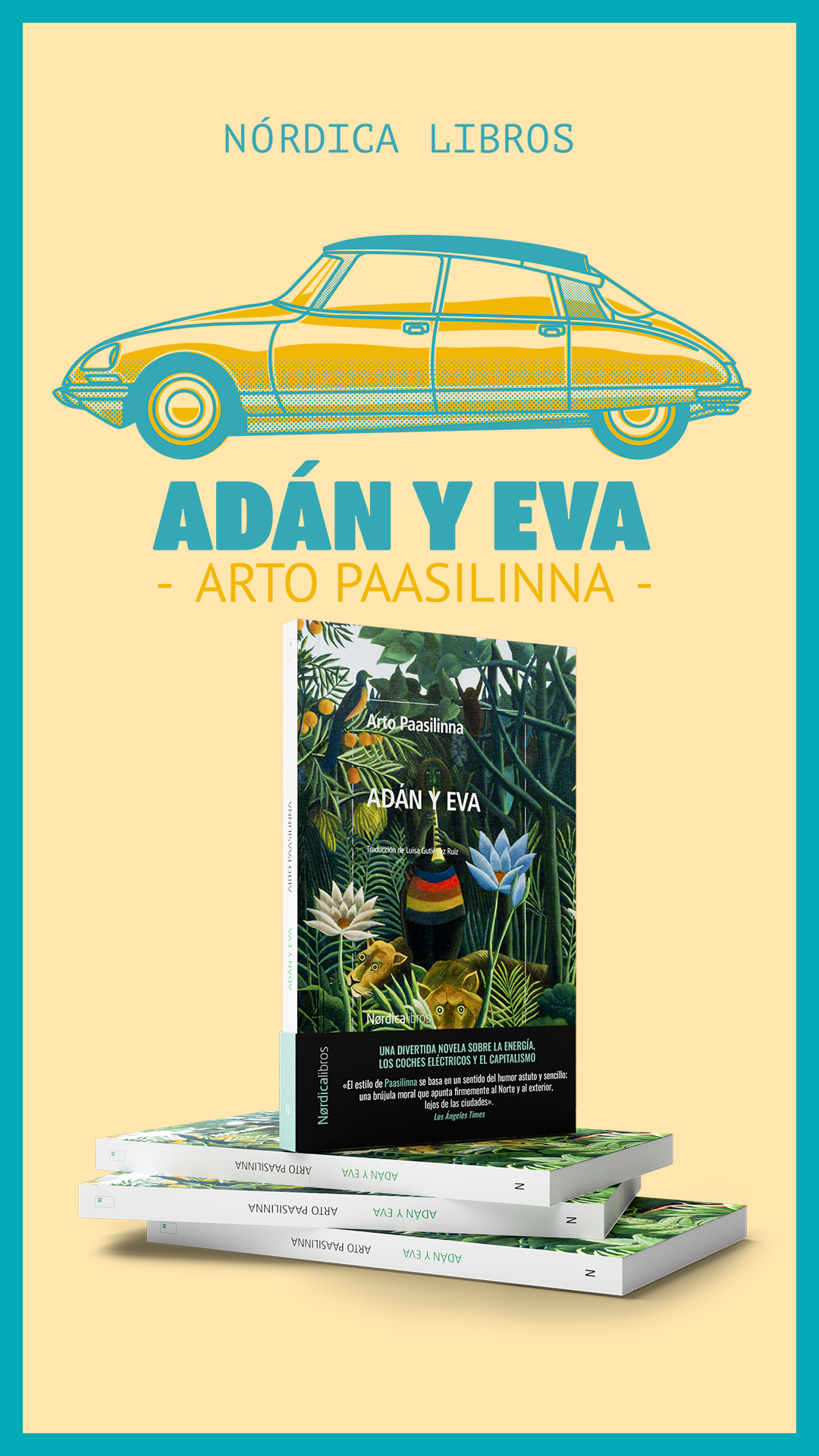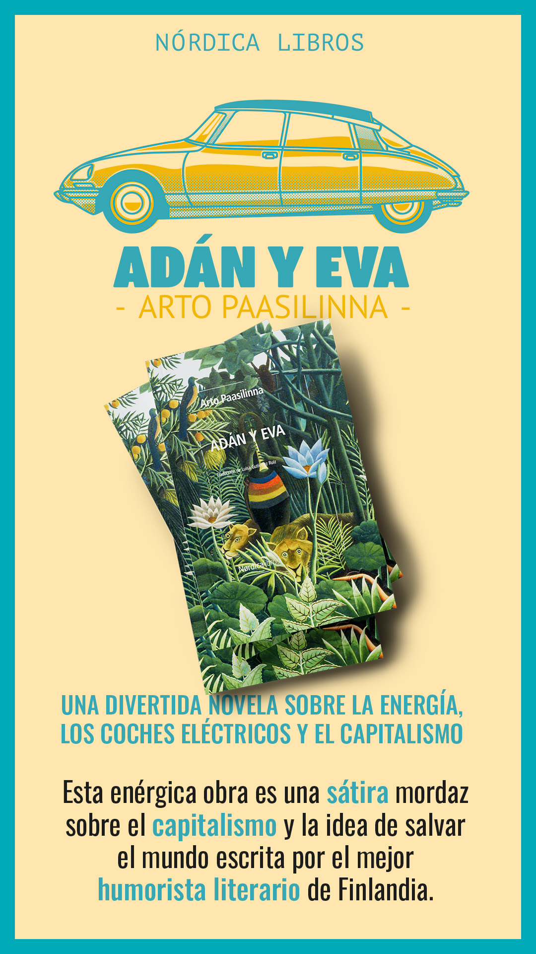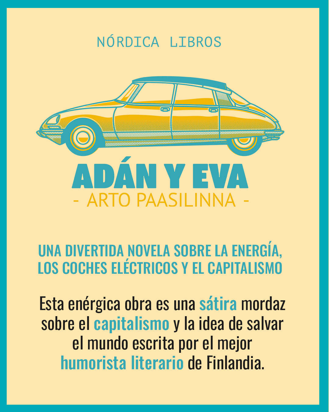 Adán y Eva es una de las novelas más divertidas del escritor finlandés Arto Paasilinna. Una novela sobre la energía, los coches eléctricos y el capitalismo.