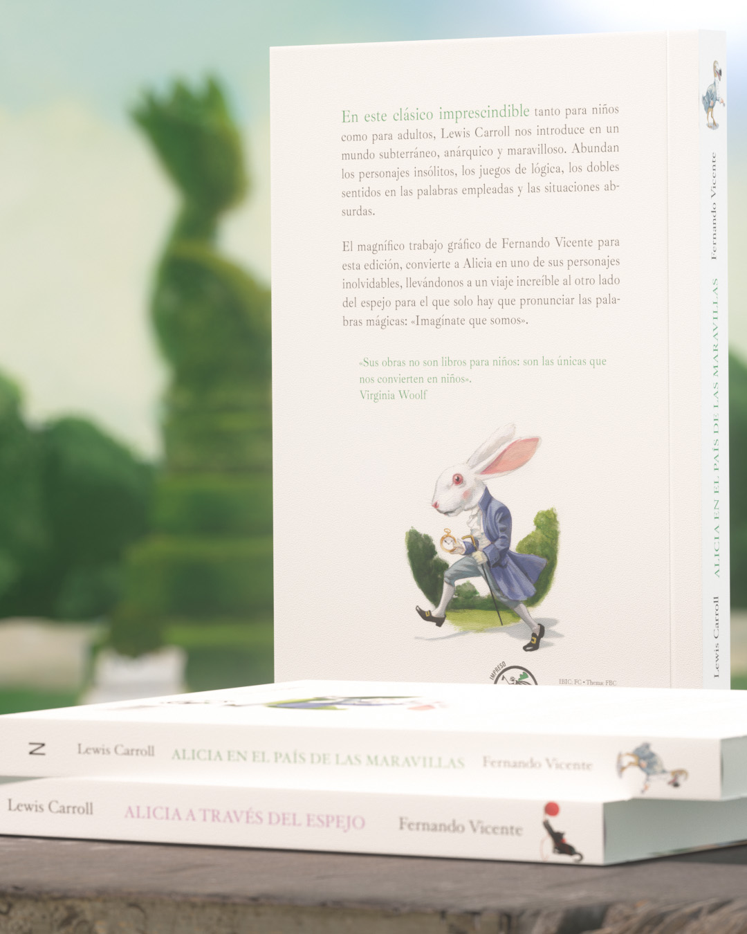 El magnífico trabajo gráfico de Fernando Vicente para esta edición, convierte a Alicia en uno de sus personajes inolvidables, llevándonos a un viaje increíble al otro lado del espejo para el que sólo hay que pronunciar las palabras mágicas: «Imagínate que somos».