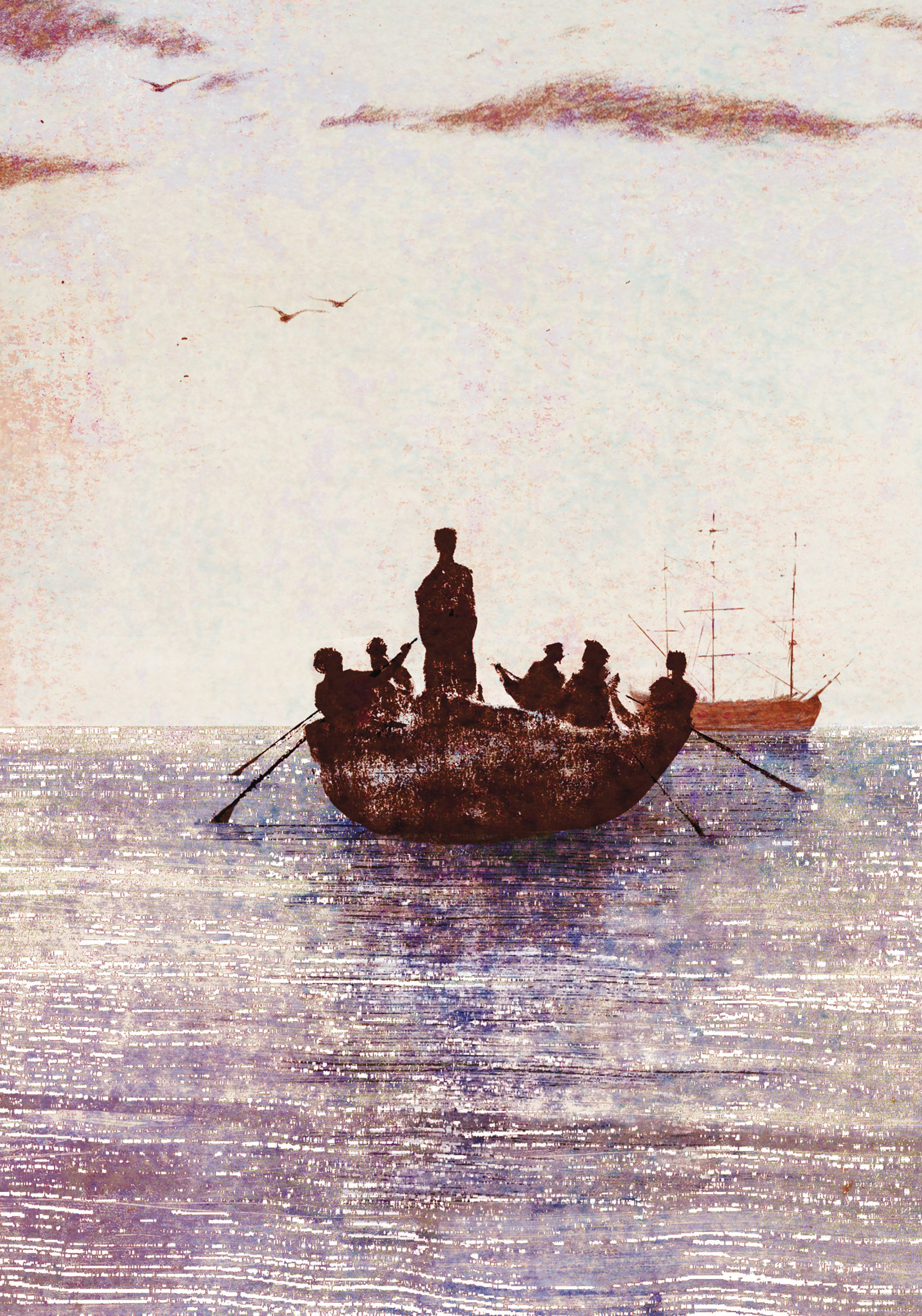 Las magníficas ilustraciones de Elena Ferrándiz nos llevan a bordo del Santo Domingo en su travesía por el Pacífico.