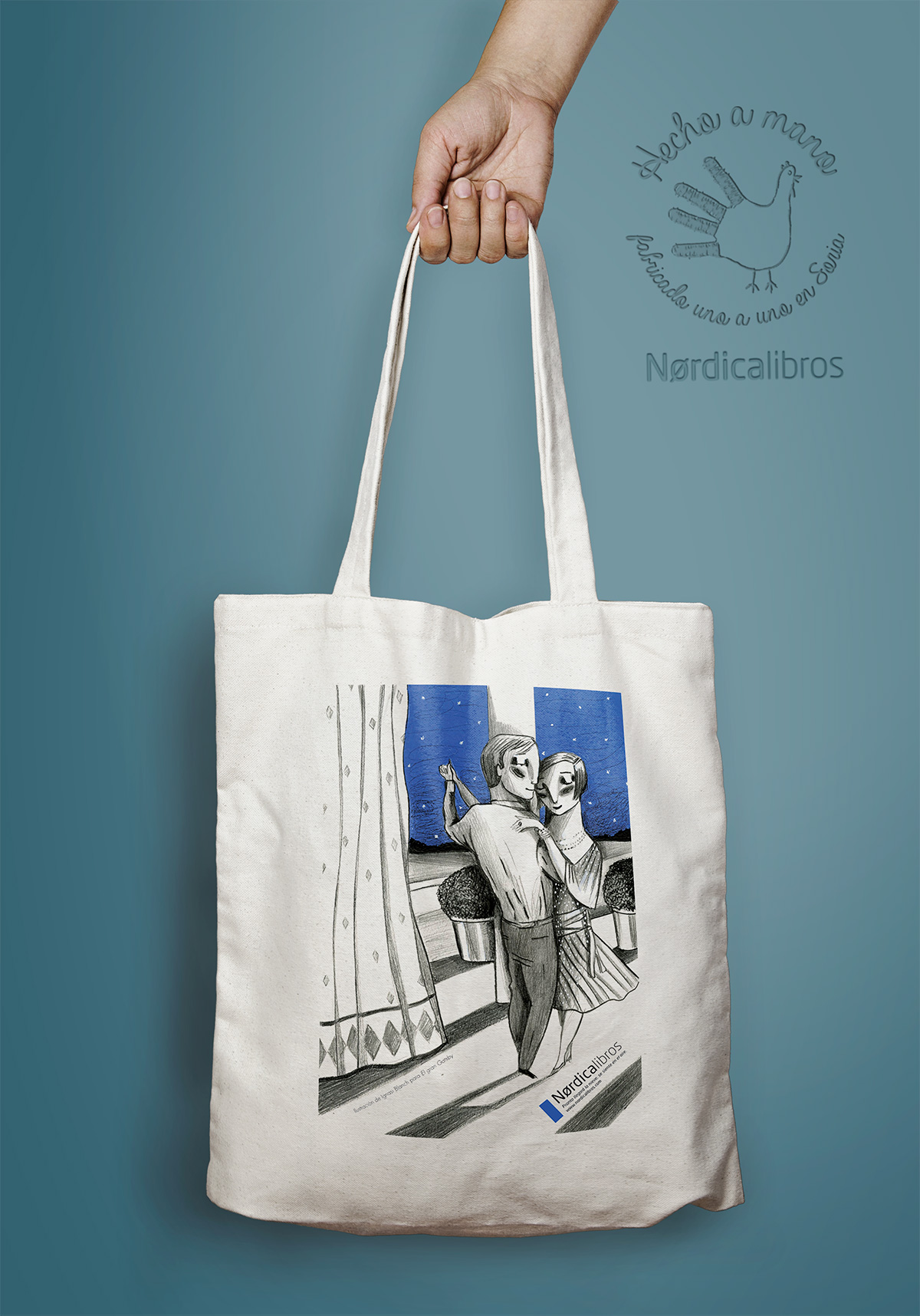 Bolsa de algodón orgánico con una fabulosa ilustración de Ignasi Blanch para el libro El gran Gatsby. Estas bolsas se imprimen una a una es Soria