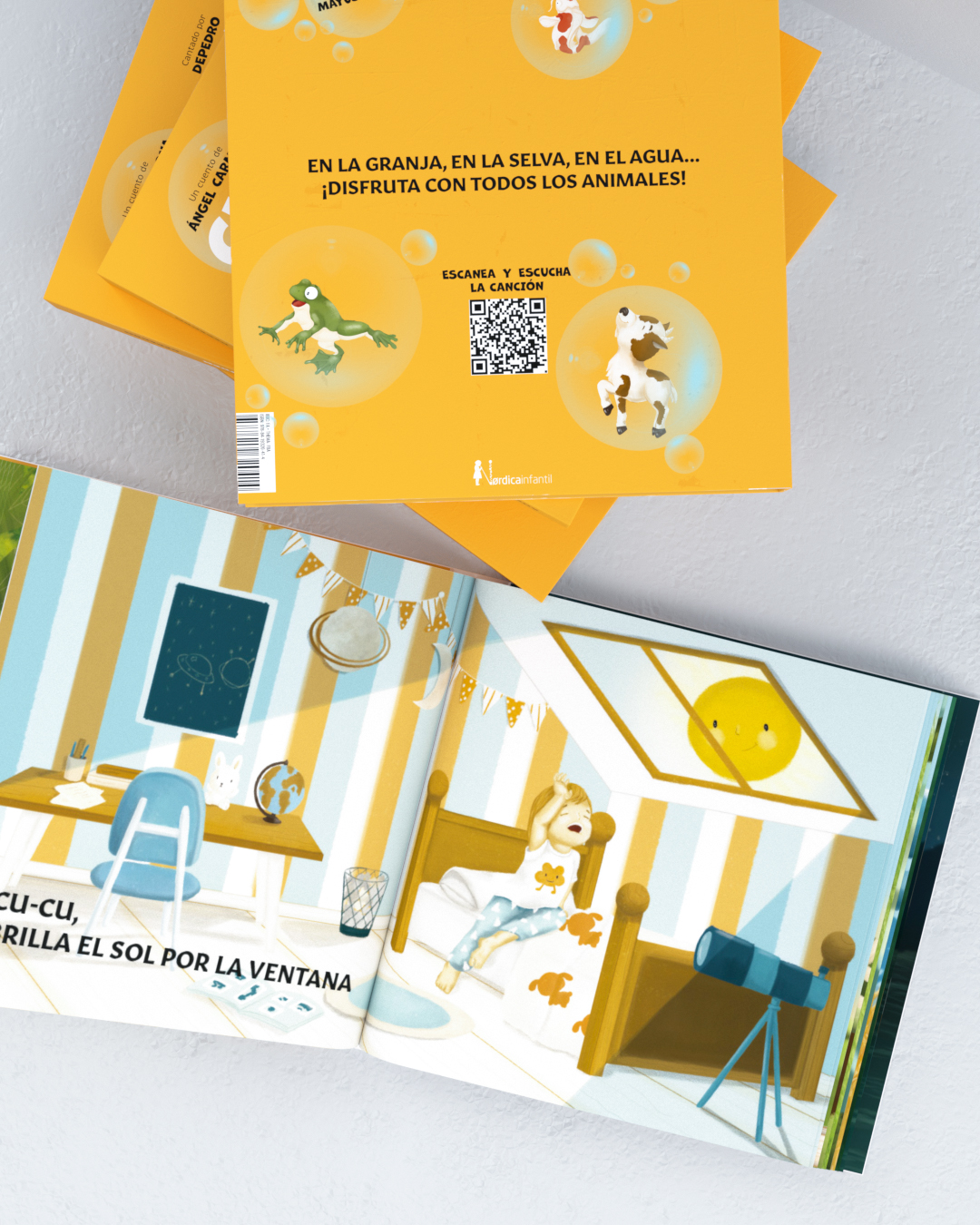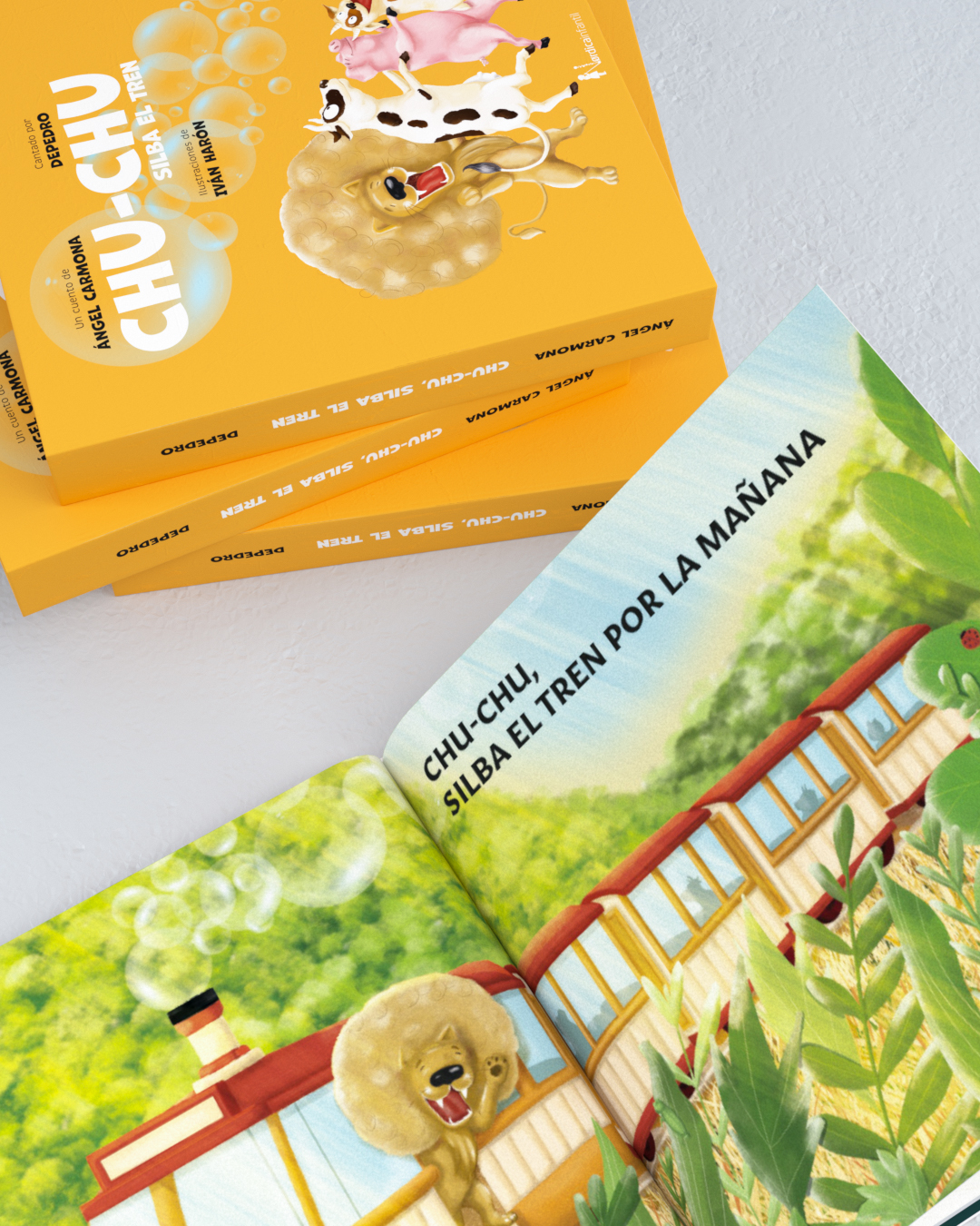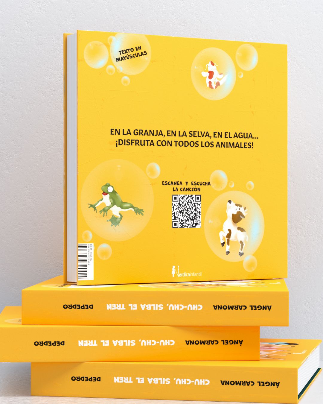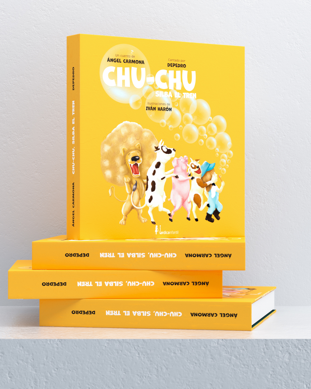 Chu-chu, silba el tren es un álbum en cartón para pre-lectores o primeros lectores que puede ser leído ¡o cantado! Incluye un código QR para escuchar la canción del cuentopor De Pedro.
