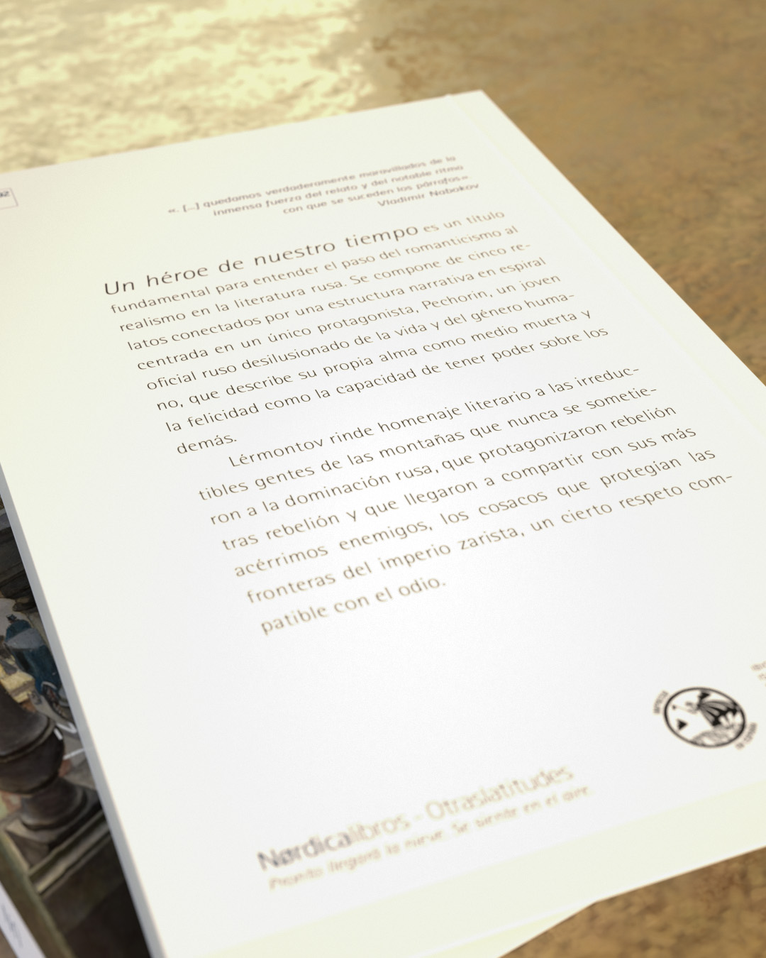 Se compone de cinco relatos conectados por una estructura narrativa espiral centrada en un único protagonista, Pechorin, un joven oficial ruso desilusionado de la vida y del género humano, que describe su propia alma como medio muerta y la felicidad como la capacidad de tener poder sobre los demás. Nabokov en su prólogo da una clase magistral de literatura rusa. En algún momento señala: «Las cinco historias van creciendo, girando, revelando y enmascarando sus contornos, alejándose y reapareciendo con una nueva perspectiva o luz como cinco cimas montañosas que acompañarán a un viajero por los meandros de un cañón del Cáucaso».