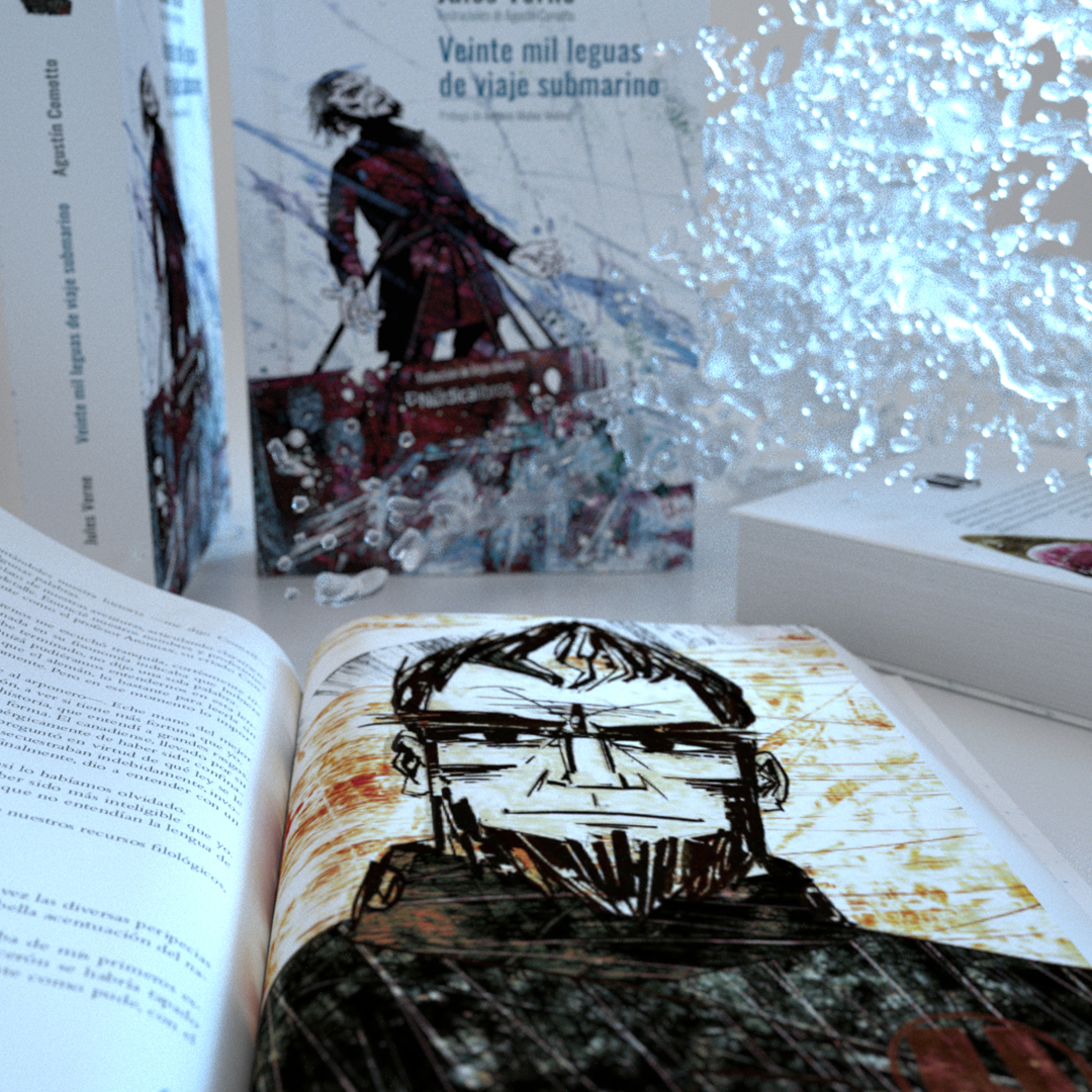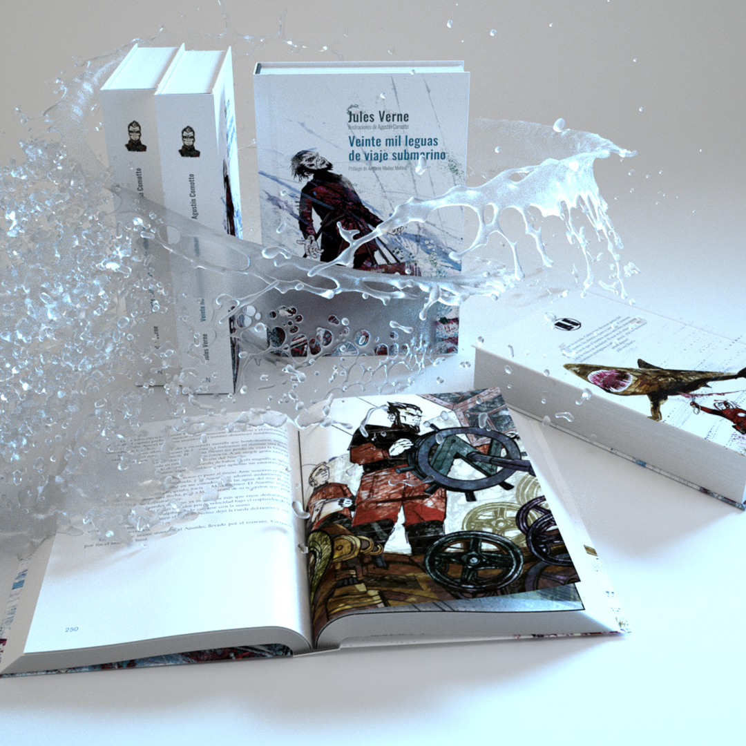 Veinte mil leguas de viaje submarino es una obra narrada en primera persona por el profesor francés Pierre Aronnax, notable biólogo, que es hecho prisionero por el Capitán Nemo y es conducido por los océanos a bordo del submarino Nautilus, en compañía de su criado Conseil y del arponero canadiense Ned Land. Esta edición, que cuenta con una nueva traducción, es una de las obras gráficas más importantes de nuestro catálogo de libros ilustrados.